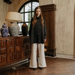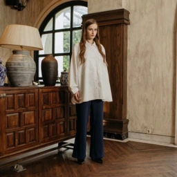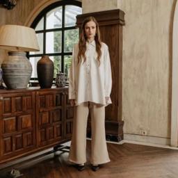 - Potongan Boot Cut yang Mempesona: Dirancang dengan bentuk yang melebar dari lutut ke bawah, memberikan siluet tubuh yang langsing dan mempersona. Cocok dipadukan dengan heels atau sneakers, menjadikan tampilan Anda semakin menawan.